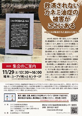 2025年6月15日(日)13:30-1600、豊島区男女平等推進センター(エポック10)において、オンラインとのハイブリッド形式で、集会「カネミ油症問題のいま―世代を超える化学物質被害のこれまでとこれから」を開催しました。