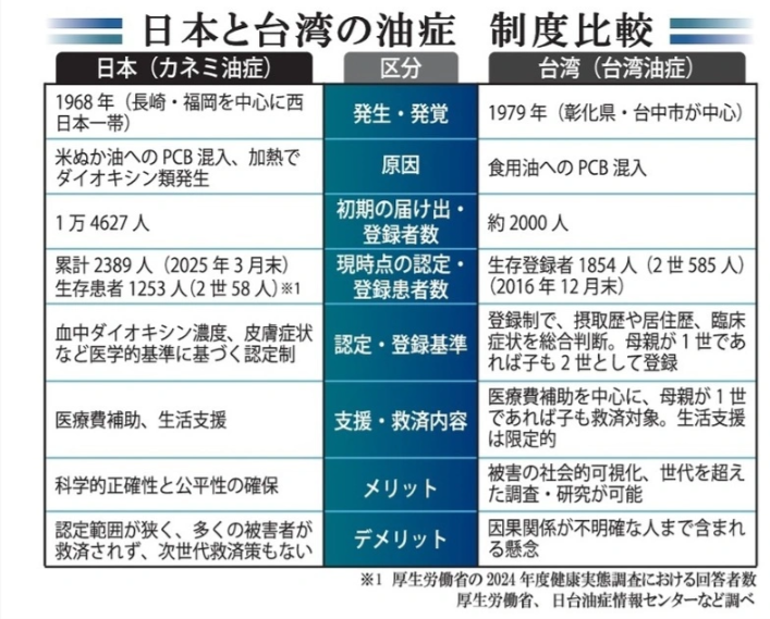 日本の油症被害者は患者として認定されないと補償されませんが、同様の油症事件が発生した台湾では、登録制度によって被害者救済が進められてきました。